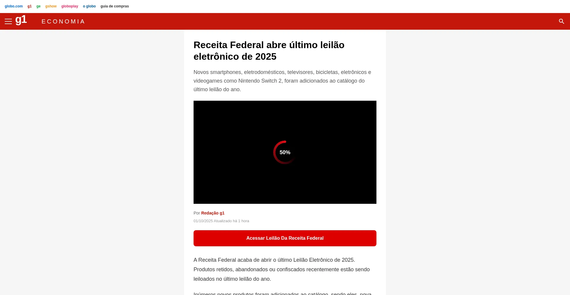 G1 - Receita Federal abre último leilão eletrônico de 2025