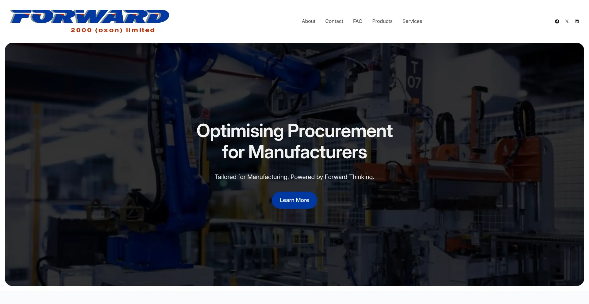 Optimising Procurement for Manufacturers Tailored for Manufacturing. Powered by Forward Thinking. Learn More Service Overview Discover how Forward 2000 delivers tailored procure...
