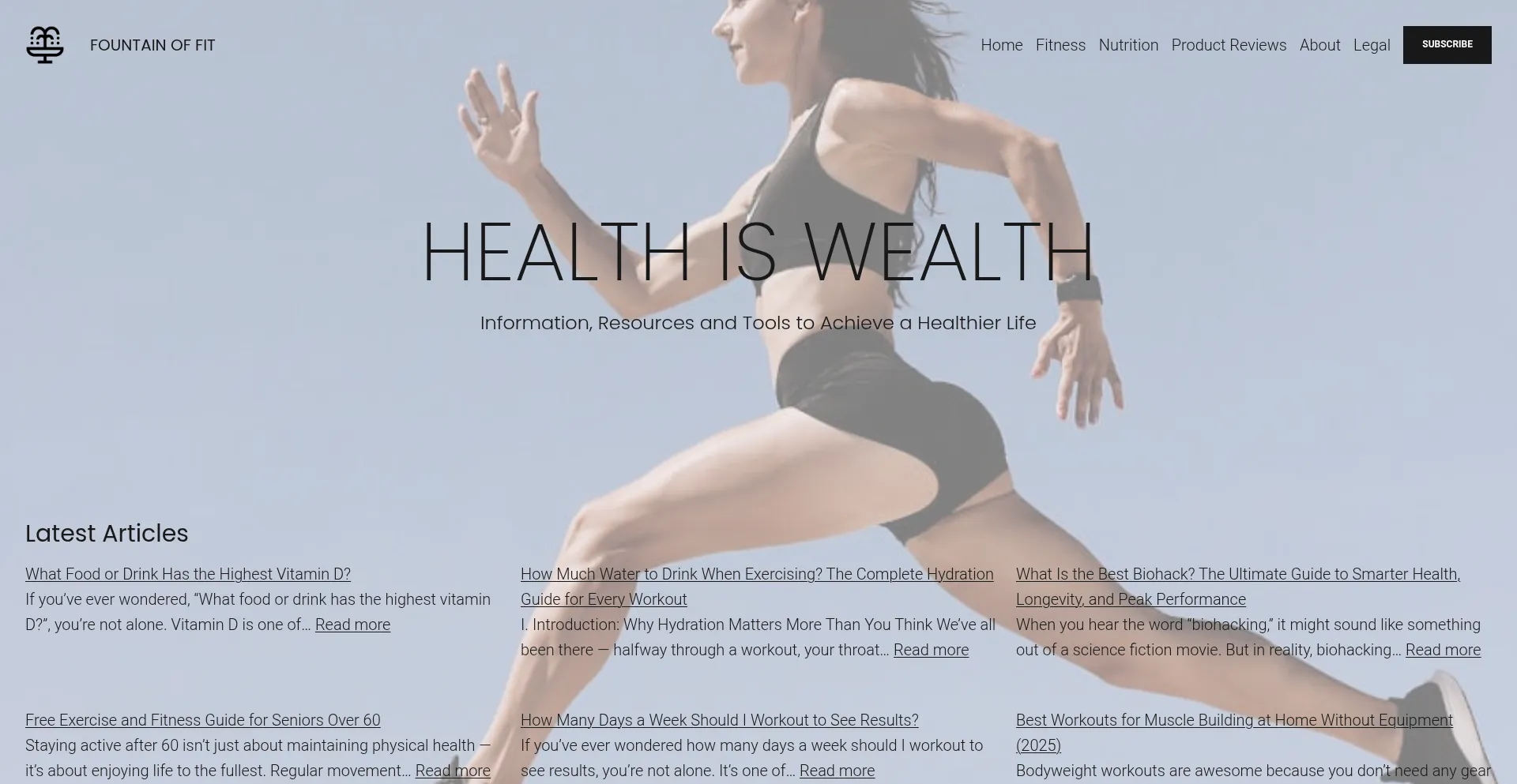 The fountainoffit.com website employs search engine optimization (SEO) techniques to improve its visibility and ranking in search engine results pages (SERPs).