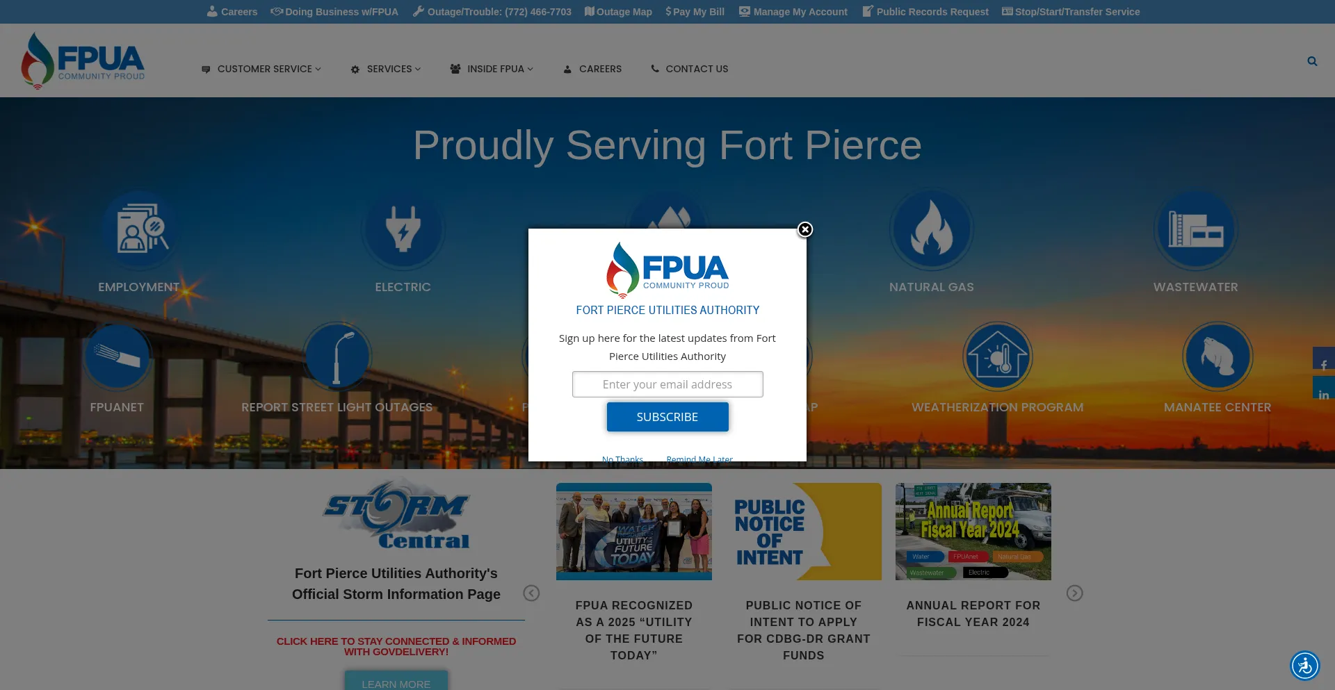 Proudly Serving Fort Pierce Electric Water Natural Gas Wastewater FPUAnet Customer Service Manatee Center Fort Pierce Utilities Authority's Official Storm Information Page CLICK...