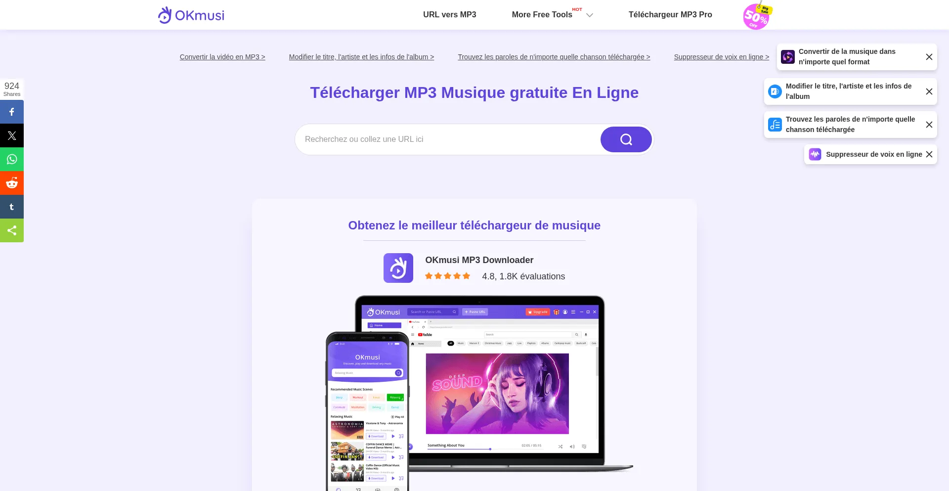 Ce téléchargeur de musique gratuit facilite l'obtention MP3 télécharger. Recherchez la chanson et téléchargez rapidement de la musique en ligne pour PC ou téléphone.