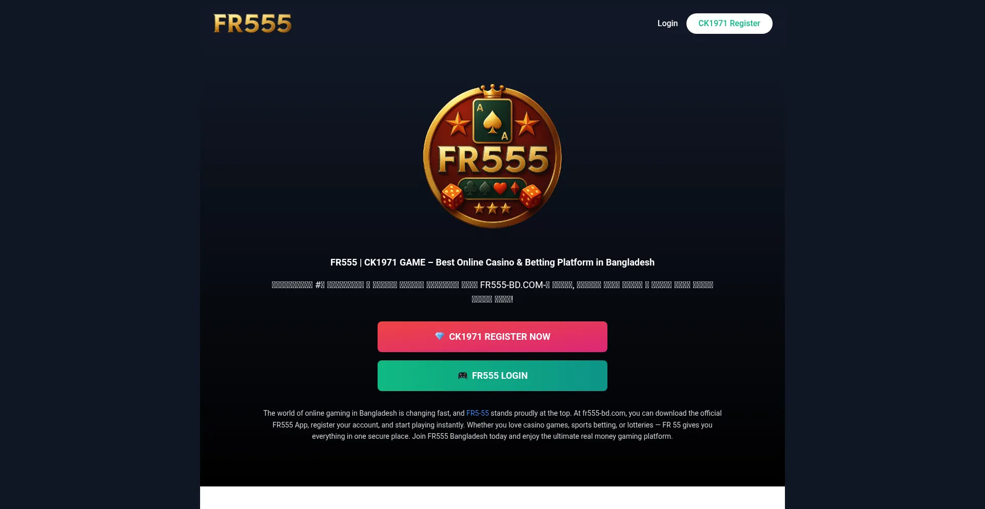 FR555 | CK1971 APP – Most Trusted Casino & Sports Betting platform. Join 500K+ players, $1M+ payouts daily & get 100% bonus up to 10,000 BDT!