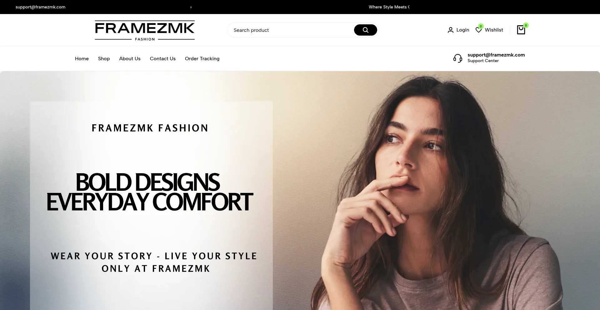 Analysis indicates that framezmk.com operates as an e-commerce platform facilitating online transactions for goods or services. The website implements shopping cart functionality, payment processing systems, and product catalog features typical of commercial retail operations.