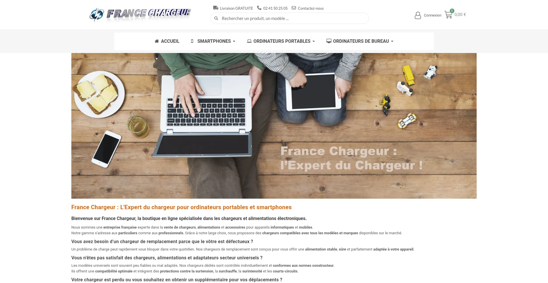 Vente de chargeurs pour ordinateurs portables, de bureau et smartphones. Livraison gratuite, expédition le jour même, société française, prix imbattables !