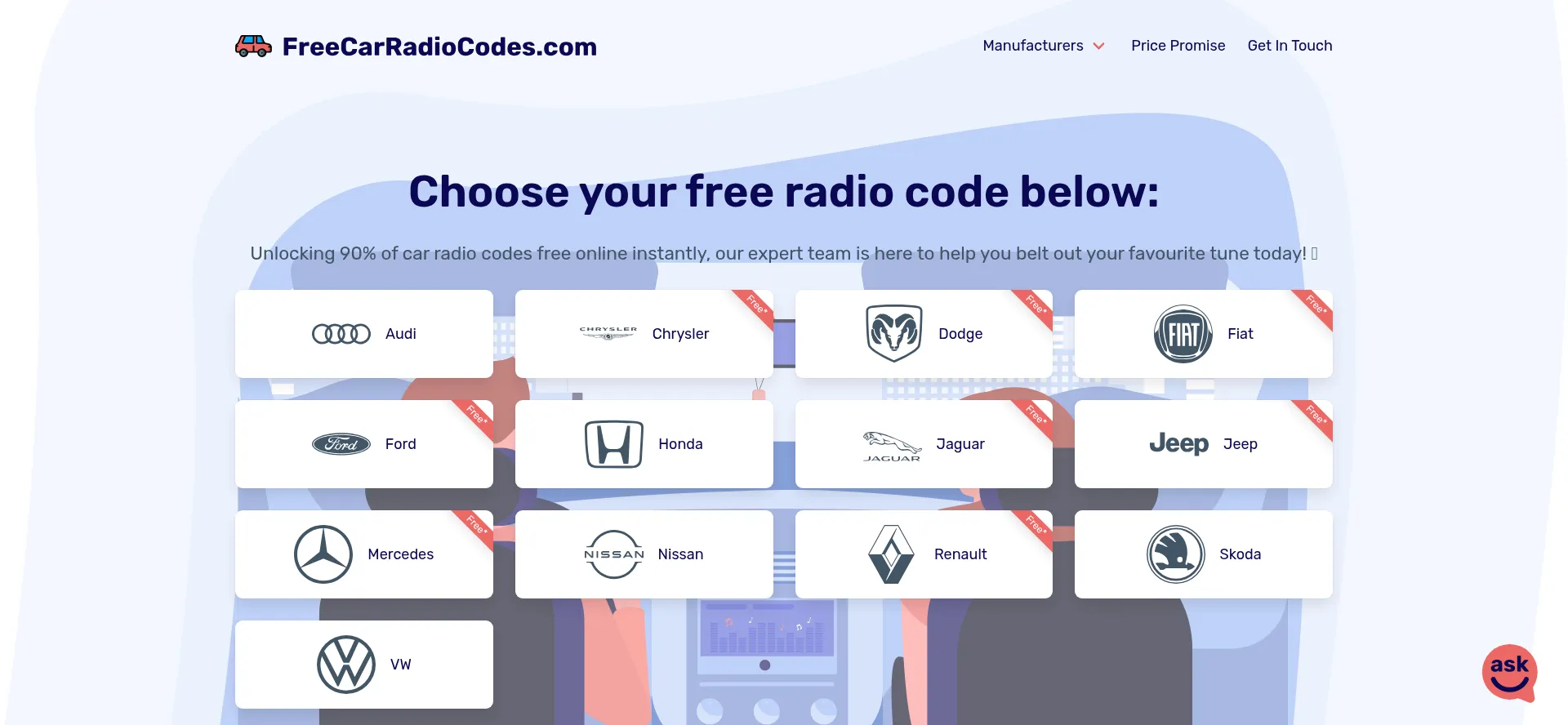 Free car radio codes for Audi, Chrysler, Ford, Renault, Volkswagen & other top car makers. Unlock 90% of radio manufacturers & models.