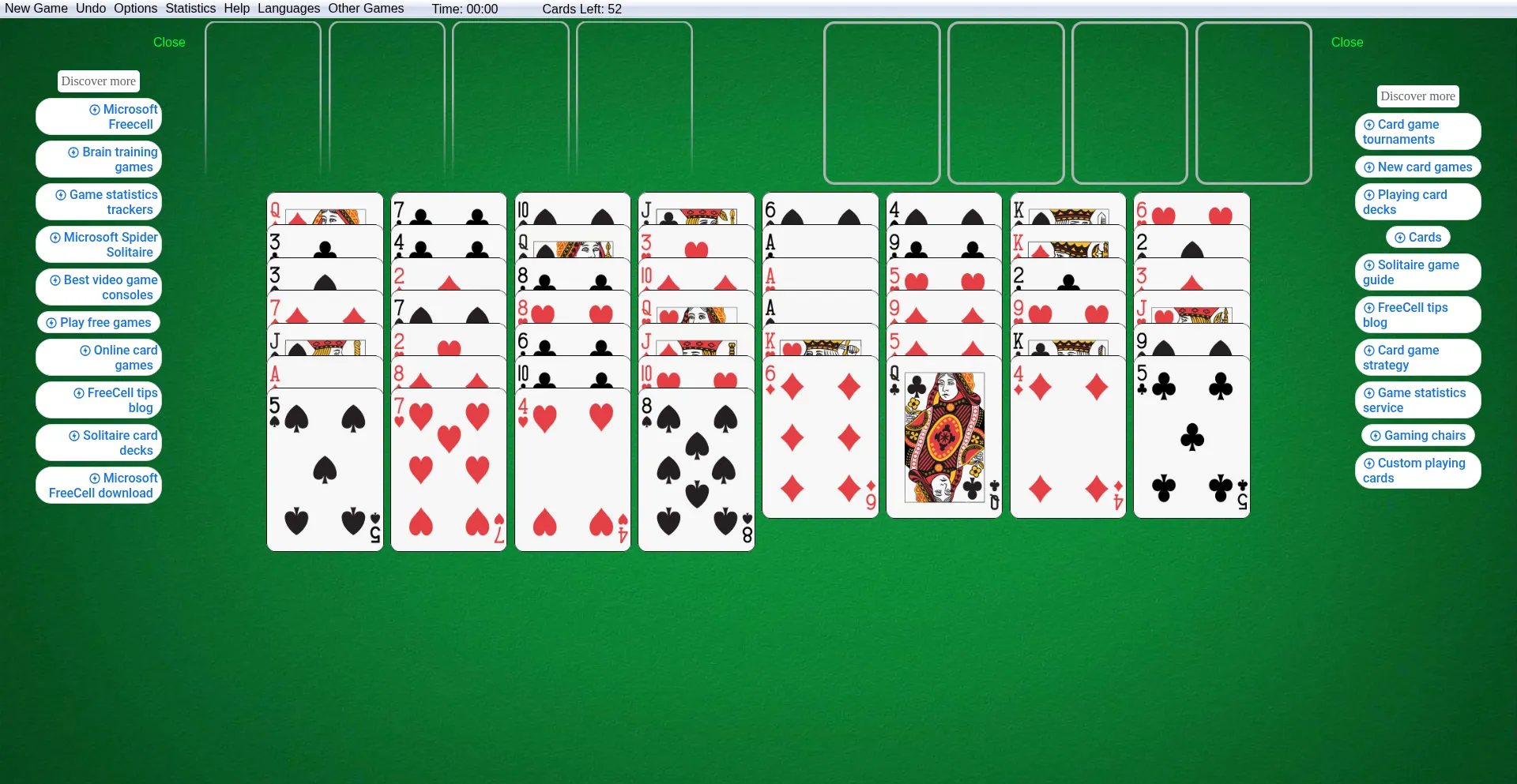 Fullscreen Free FreeCell Solitaire Online with Large Cards.