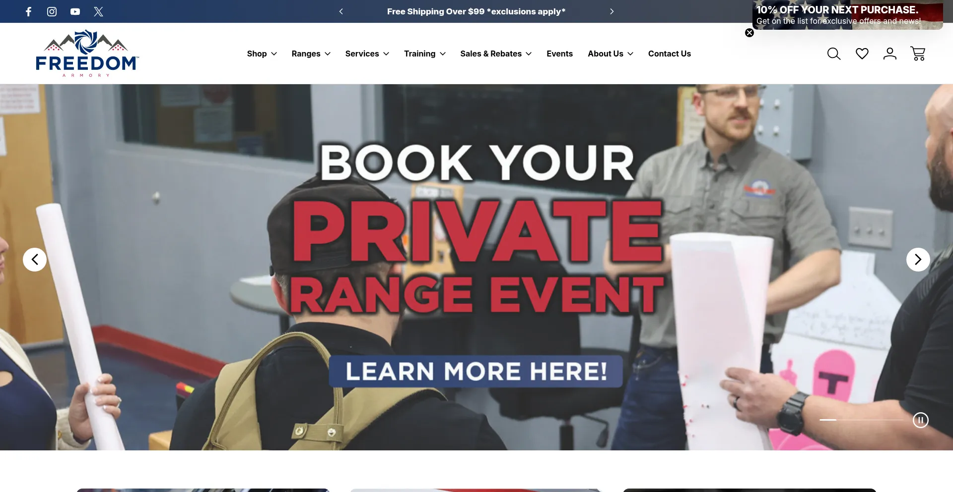 Analysis indicates that freedomarmory.com operates as an e-commerce platform facilitating online transactions for goods or services. The website implements shopping cart functionality, payment processing systems, and product catalog features typical of commercial retail operations.