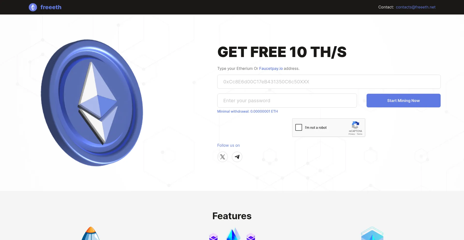 Freeeth.net is a cryptocurrency scam site posing as an investment platform.