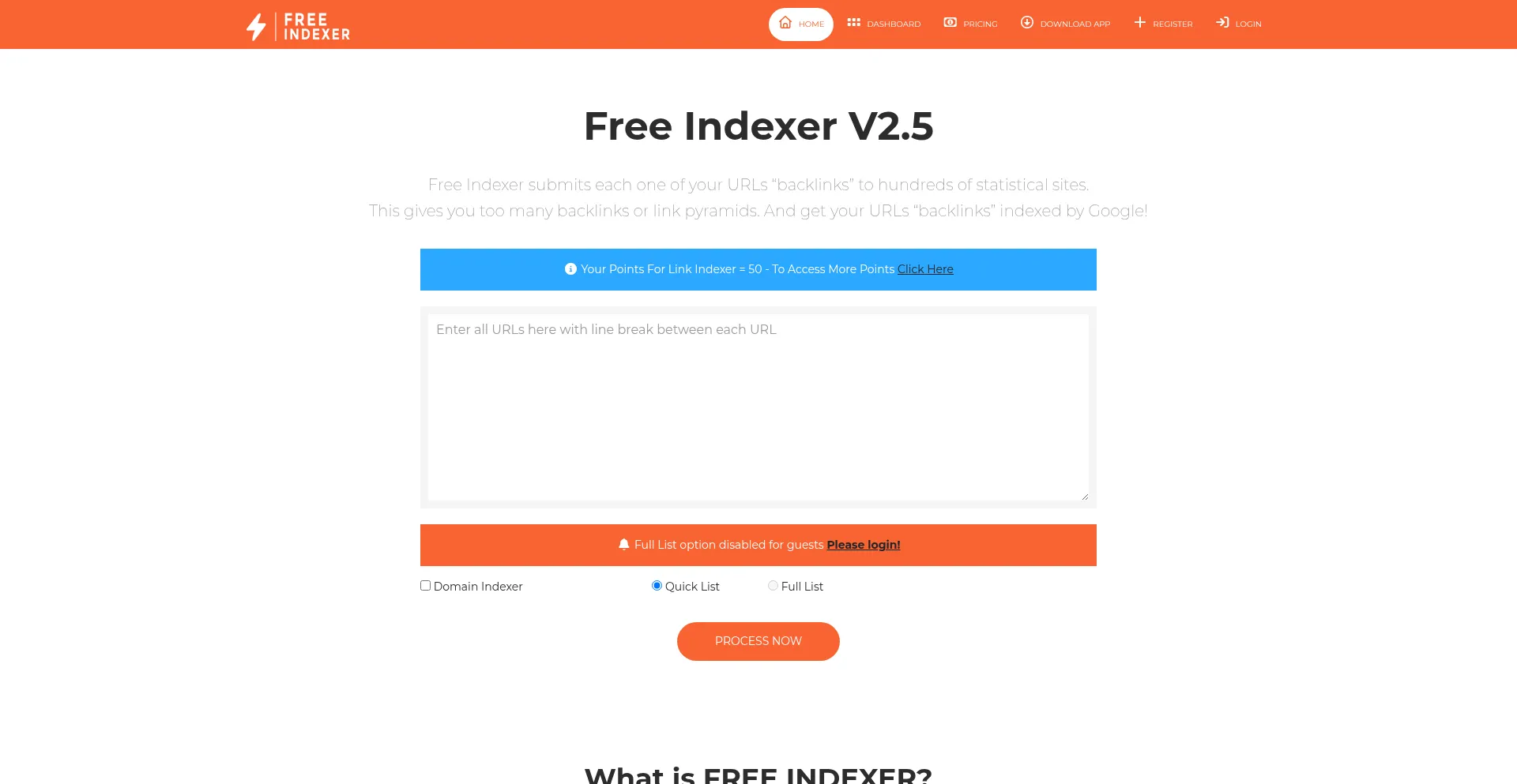 Free Indexer submits each one of your URLs backlinks to over 300 statistic sites. This gives you too many backlinks or link pyramids. And 100% get your URLs backlinks indexed by...
