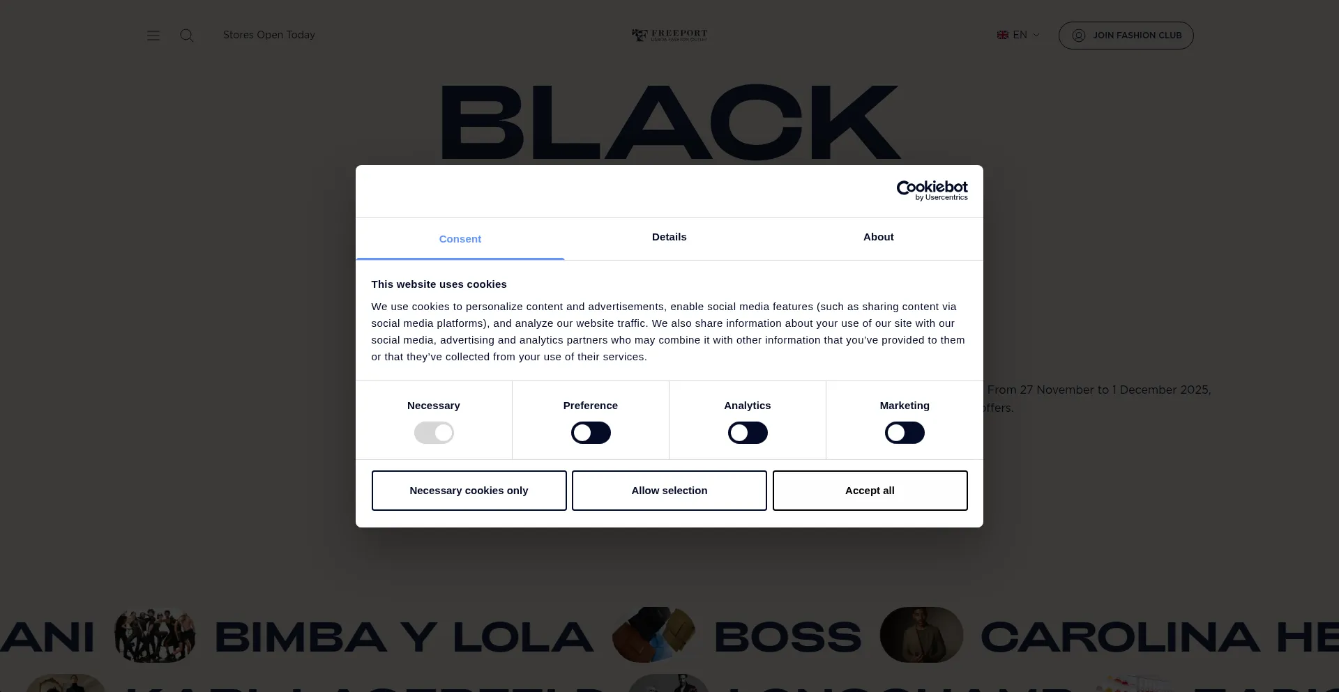The website implements cookie consent mechanisms in compliance with privacy regulations such as GDPR or CCPA. This demonstrates that freeportfashionoutlet.pt adheres to data protection standards and provides users with control over personal data collection practices.