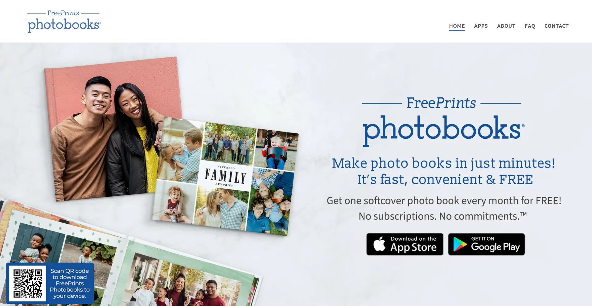 The freeprintsphotobooks.com website offers a mobile application for Android devices, indicating expanded platform presence beyond web-based services.