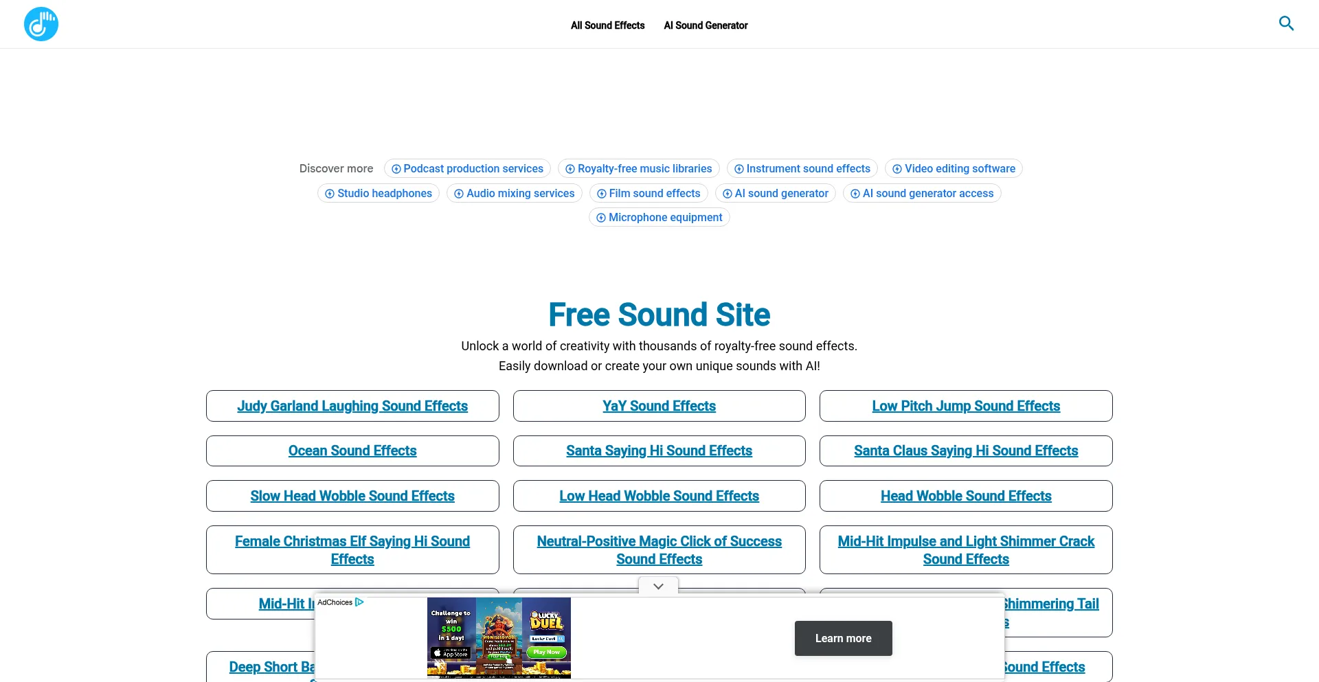 Discover thousands of royalty-free sound effects on FreeSoundSite - no attribution required. Instantly download high-quality audio for videos, games, podcasts, and more, or crea...