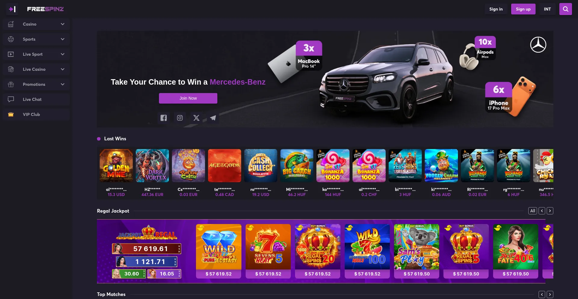 Play slots, live casino and sports betting at Freespinz. Secure play, quick payouts and rewards.