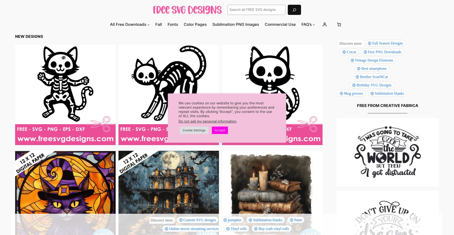 The website implements cookie consent mechanisms in compliance with privacy regulations such as GDPR or CCPA. This demonstrates that freesvgdesigns.com adheres to data protection standards and provides users with control over personal data collection practices.