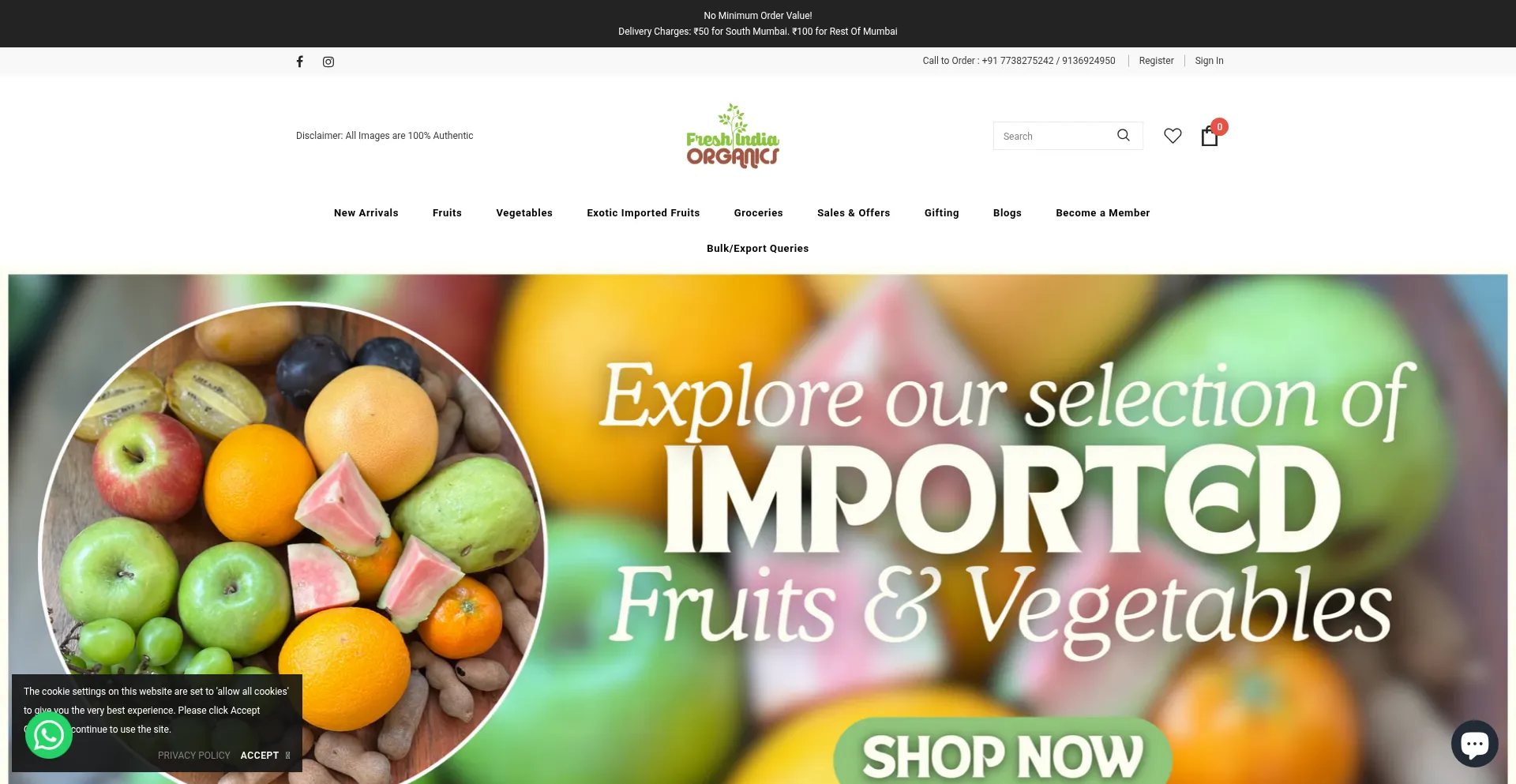 The website implements cookie consent mechanisms in compliance with privacy regulations such as GDPR or CCPA. This demonstrates that freshindiaorganics.com adheres to data protection standards and provides users with control over personal data collection practices.