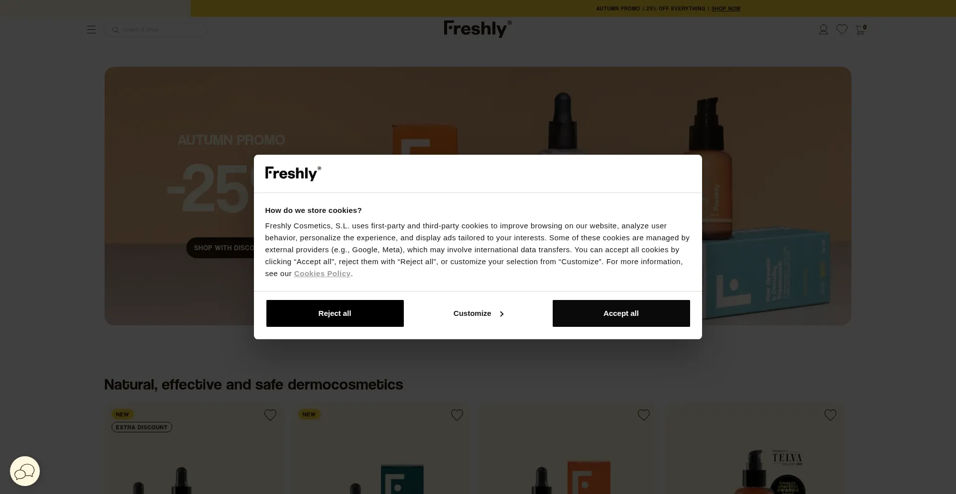 The website implements cookie consent mechanisms in compliance with privacy regulations such as GDPR or CCPA. This demonstrates that freshlycosmetics.com adheres to data protection standards and provides users with control over personal data collection practices.