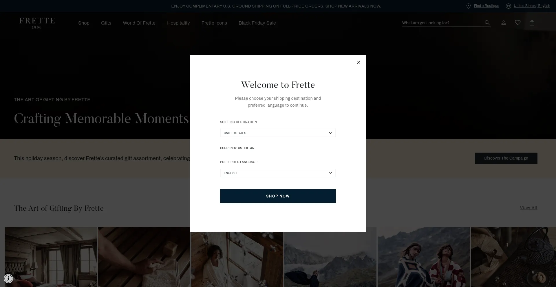 Analysis indicates that frette.com operates as an e-commerce platform facilitating online transactions for goods or services. The website implements shopping cart functionality, payment processing systems, and product catalog features typical of commercial retail operations.