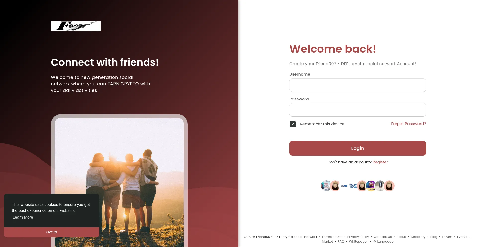 Friend007 all in one DEFI crypto social network where you can earn with your daily activities and buy with discount Friendcoin007