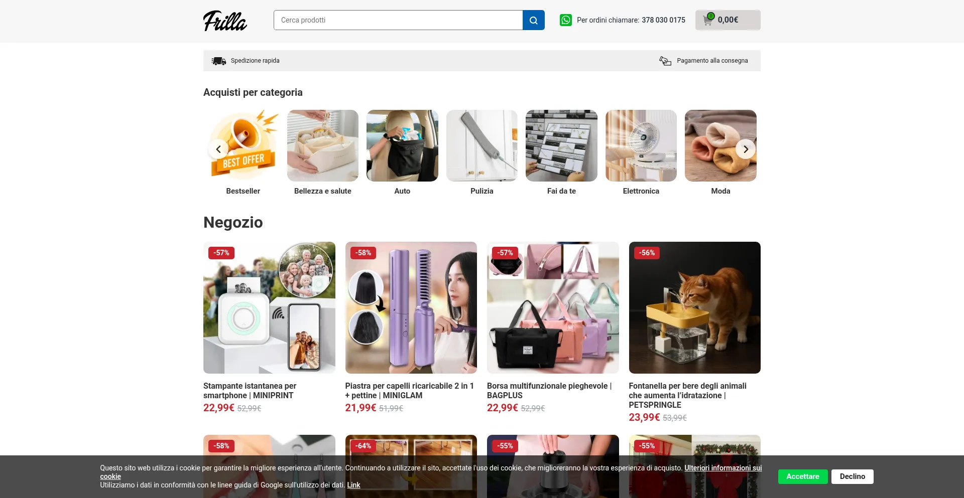 Analysis indicates that frilla.it operates as an e-commerce platform facilitating online transactions for goods or services. The website implements shopping cart functionality, payment processing systems, and product catalog features typical of commercial retail operations.