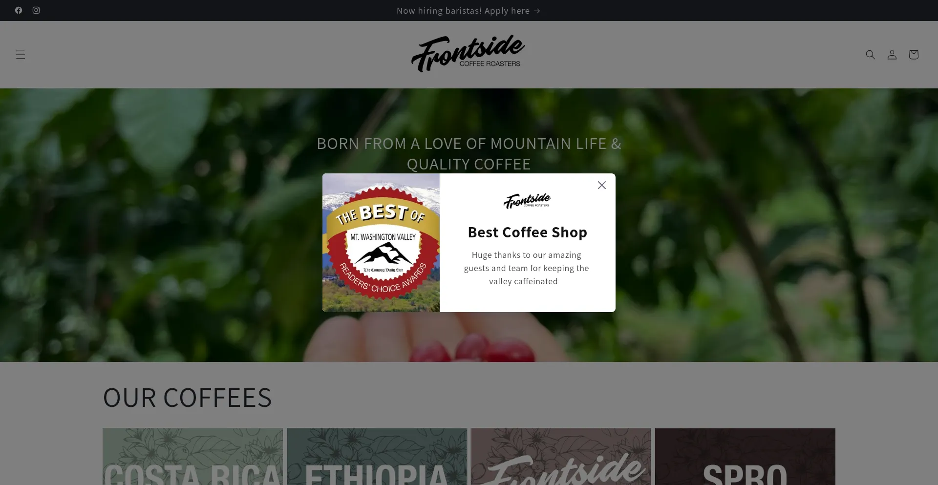 The frontsidecoffee.com website utilizes free e-commerce platform solutions, which may indicate cost-conscious operations but could also suggest limitations in security features, customer support, or advanced functionality compared to enterprise-grade solutions.