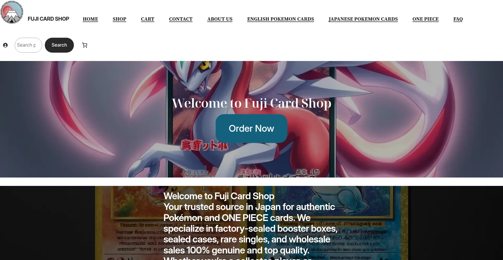 Welcome to Fuji Card Shop Order Now Welcome to Fuji Card ShopYour trusted source in Japan for authentic Pokémon and ONE PIECE cards. We specialize in factory-sealed booster box...