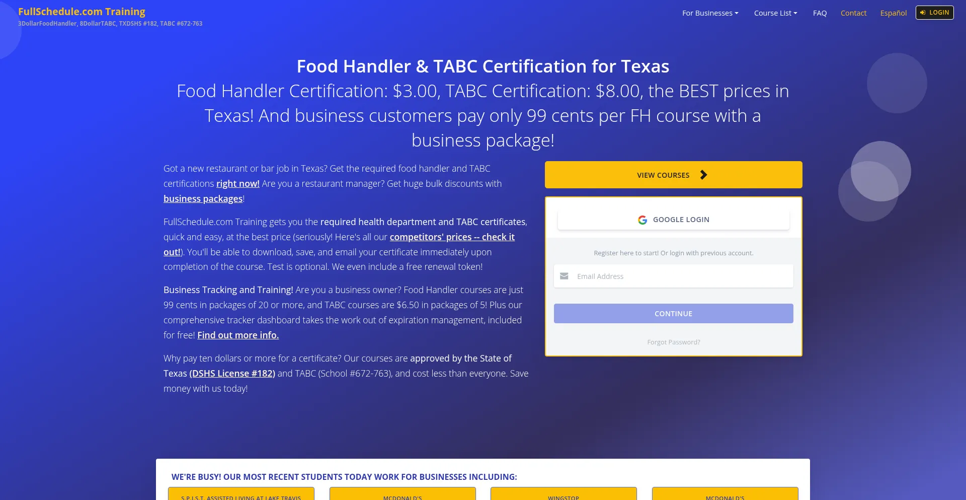 FullSchedule.com | $0.99 / $3.00 | Texas Food Handler Certificates | 99CentFoodHandler.com | 3DollarFoodHandler.com