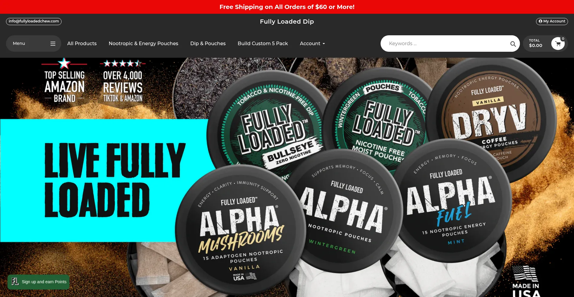The fullyloadeddip.com website utilizes free e-commerce platform solutions, which may indicate cost-conscious operations but could also suggest limitations in security features, customer support, or advanced functionality compared to enterprise-grade solutions.