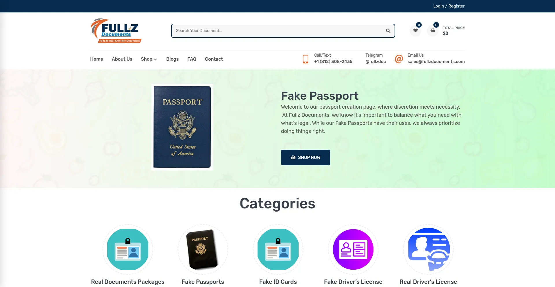 Analysis indicates that fullzdocuments.com operates as an e-commerce platform facilitating online transactions for goods or services. The website implements shopping cart functionality, payment processing systems, and product catalog features typical of commercial retail operations.