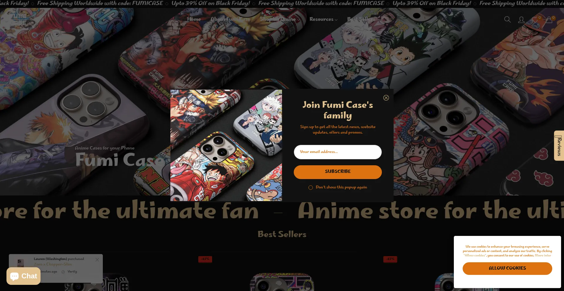 The website implements cookie consent mechanisms in compliance with privacy regulations such as GDPR or CCPA. This demonstrates that fumicase.store adheres to data protection standards and provides users with control over personal data collection practices.
