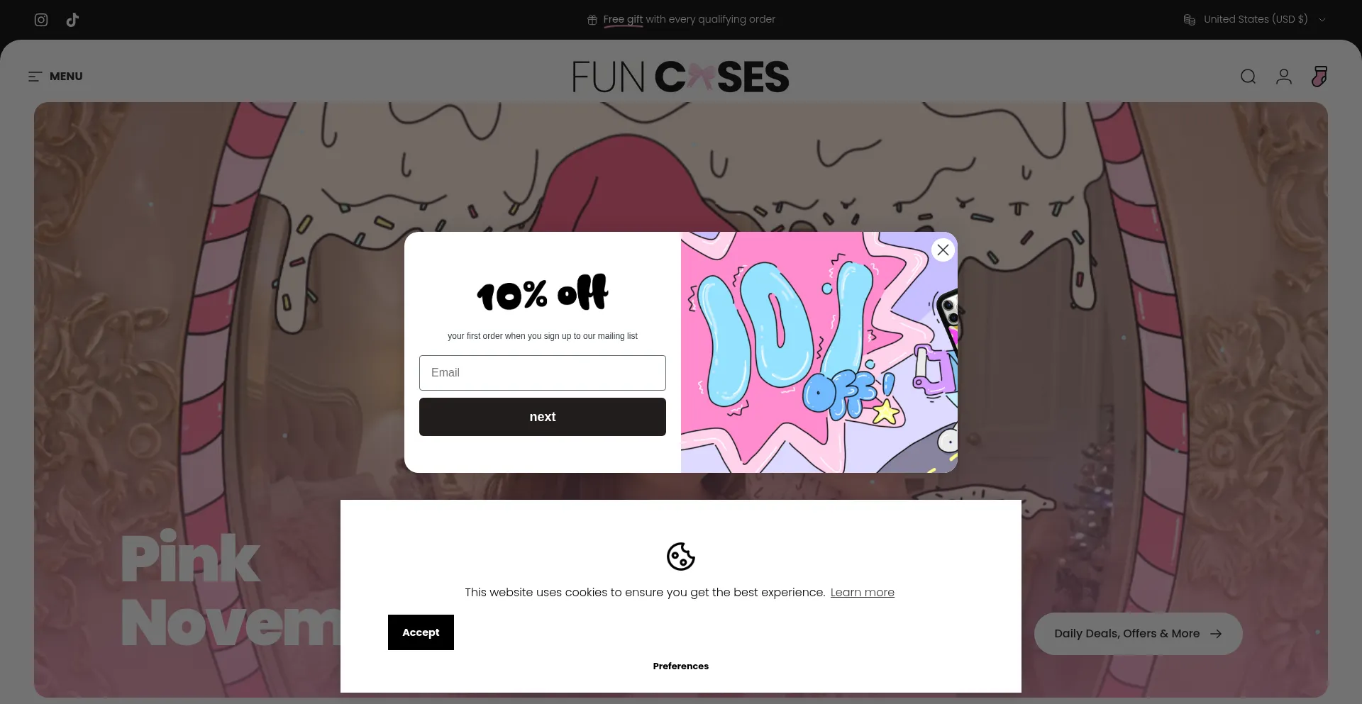 The website implements cookie consent mechanisms in compliance with privacy regulations such as GDPR or CCPA. This demonstrates that funcases.com adheres to data protection standards and provides users with control over personal data collection practices.
