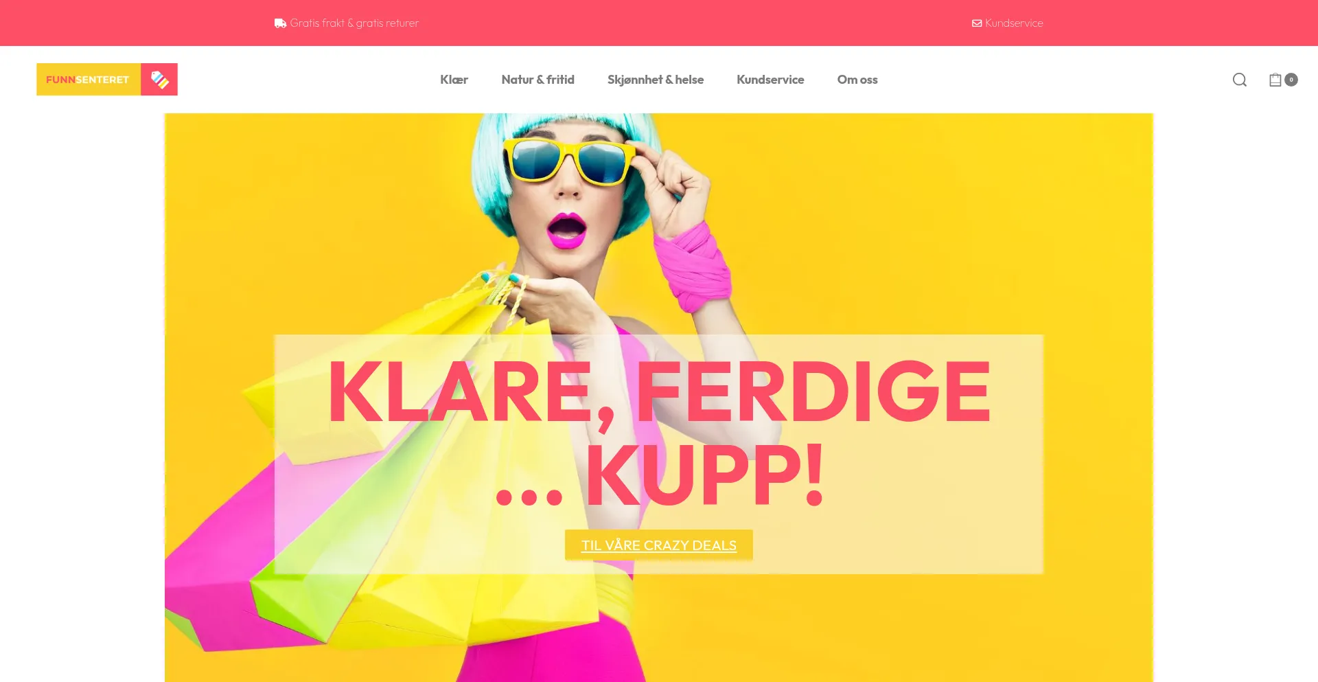 Analysis indicates that funnsenteret.com operates as an e-commerce platform facilitating online transactions for goods or services. The website implements shopping cart functionality, payment processing systems, and product catalog features typical of commercial retail operations.