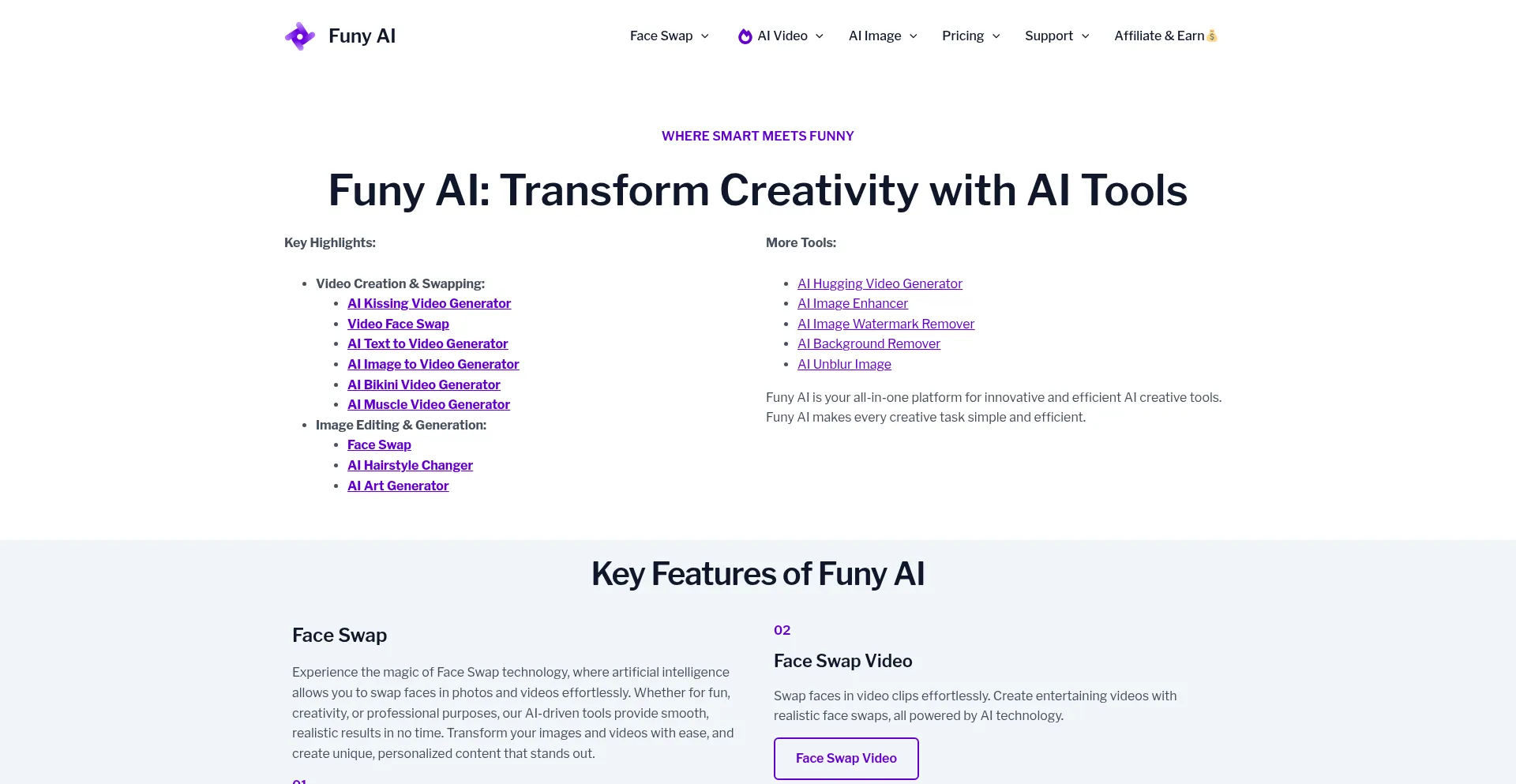 Funy AI: Free AI Video Generator, Image to Video, Text to Video, AI Kissing Generator, Face Swap, AI Art Generator and AI Hairstyle! Free and No Sign Up!