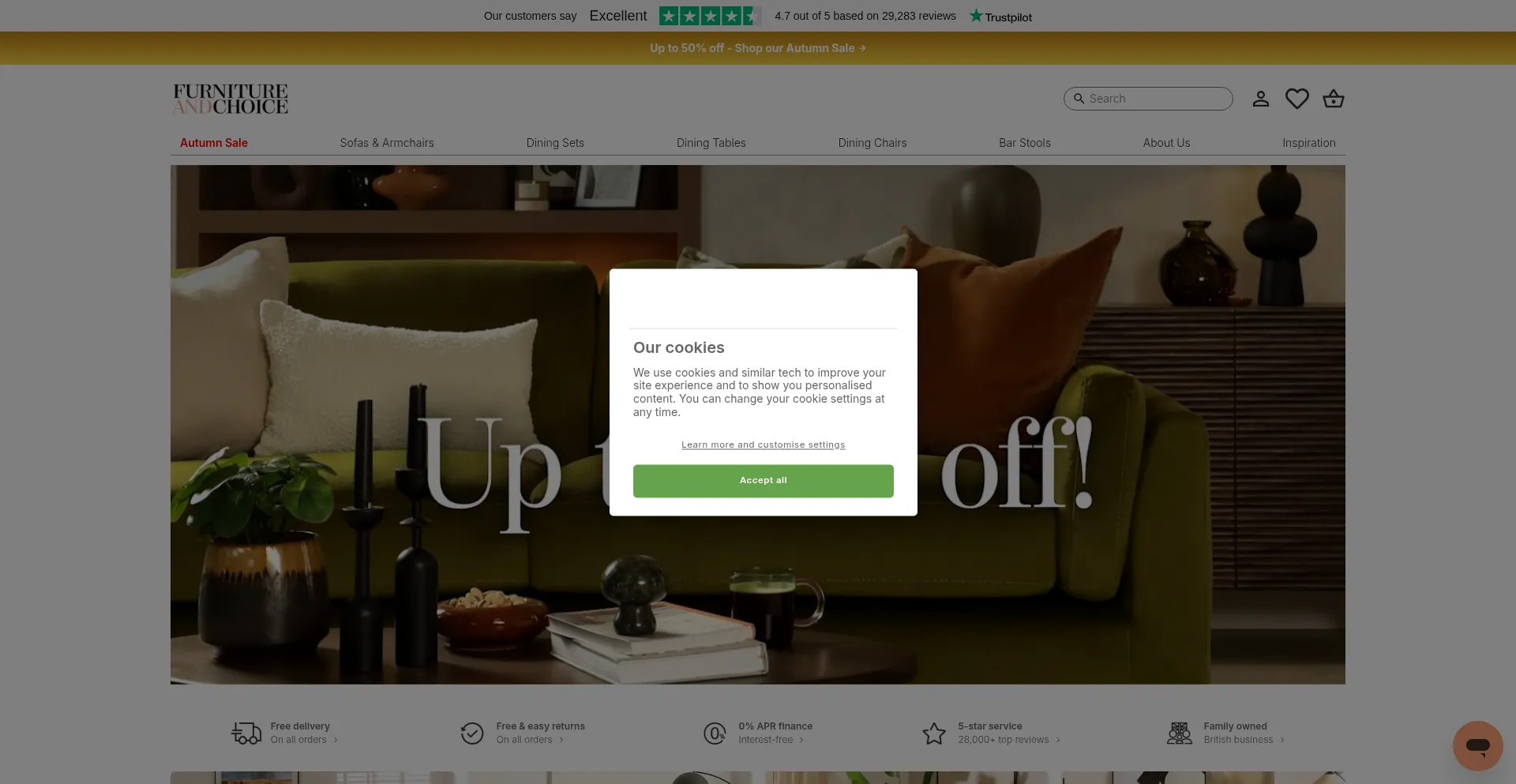 The website implements cookie consent mechanisms in compliance with privacy regulations such as GDPR or CCPA. This demonstrates that furniturechoice.co.uk adheres to data protection standards and provides users with control over personal data collection practices.