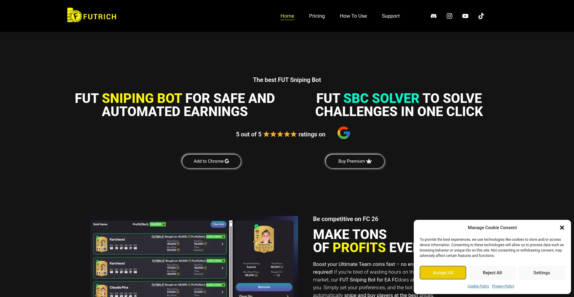 The ultimate FUT Sniping Bot to earn easy, fast and automatic coins on EA FC 26! Solve challenges in one click with our AI SBC solver!