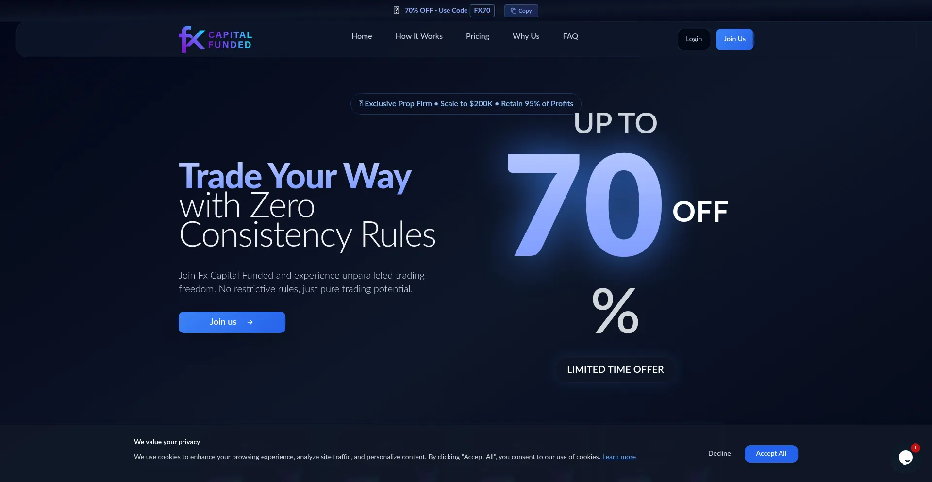 The website implements cookie consent mechanisms in compliance with privacy regulations such as GDPR or CCPA. This demonstrates that fxcapitalfunded.com adheres to data protection standards and provides users with control over personal data collection practices.
