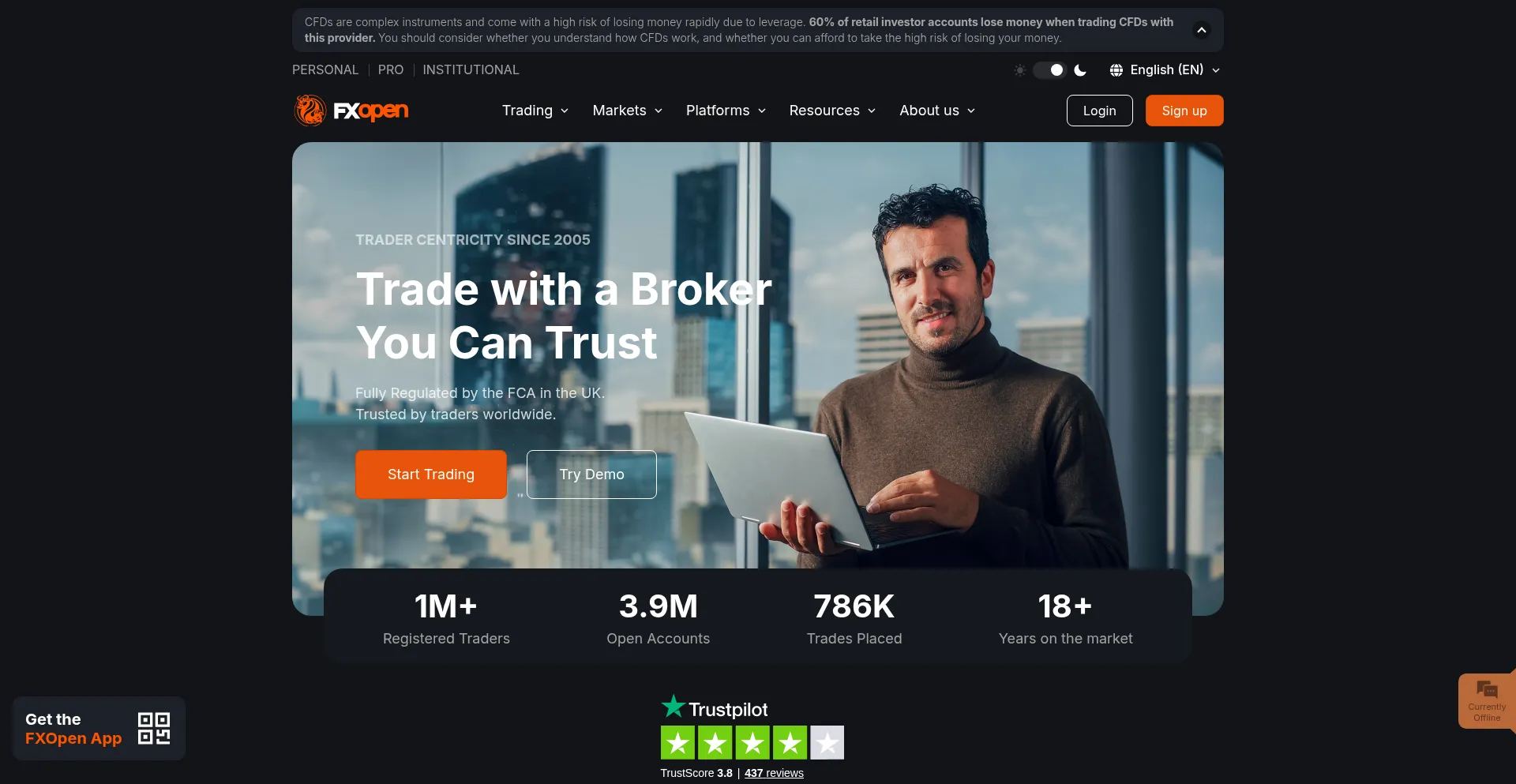 fxopen.com has a good Trustpilot score (3.8) based on 437 reviews, indicating a high level of trust from customers. It is a good sign of legitimacy!
