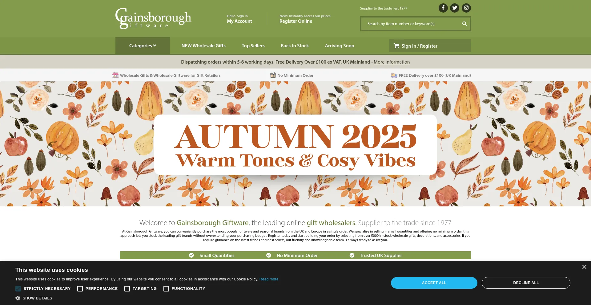 The website implements cookie consent mechanisms in compliance with privacy regulations such as GDPR or CCPA. This demonstrates that gainsboroughgiftware.com adheres to data protection standards and provides users with control over personal data collection practices.