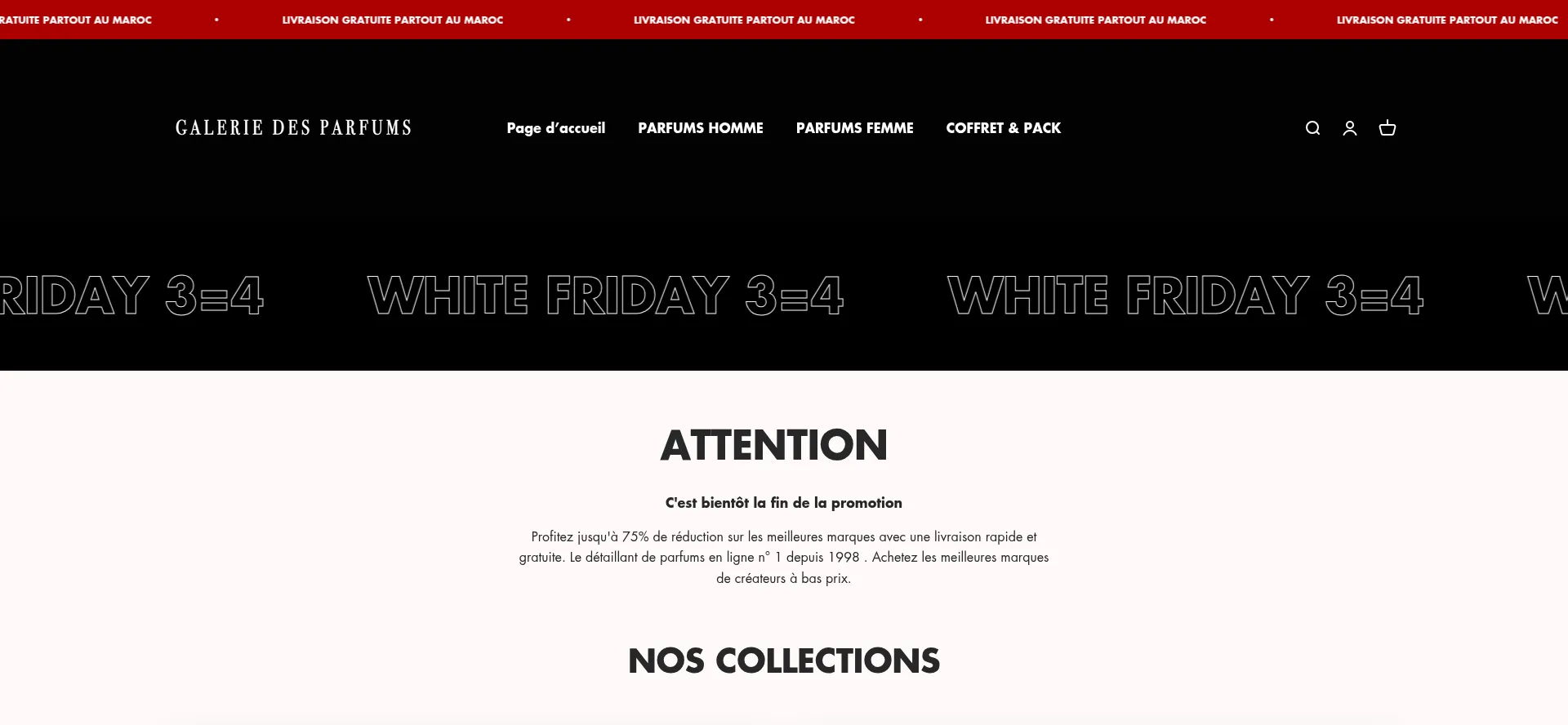 Analysis indicates that galeriedesparfums.ma operates as an e-commerce platform facilitating online transactions for goods or services. The website implements shopping cart functionality, payment processing systems, and product catalog features typical of commercial retail operations.