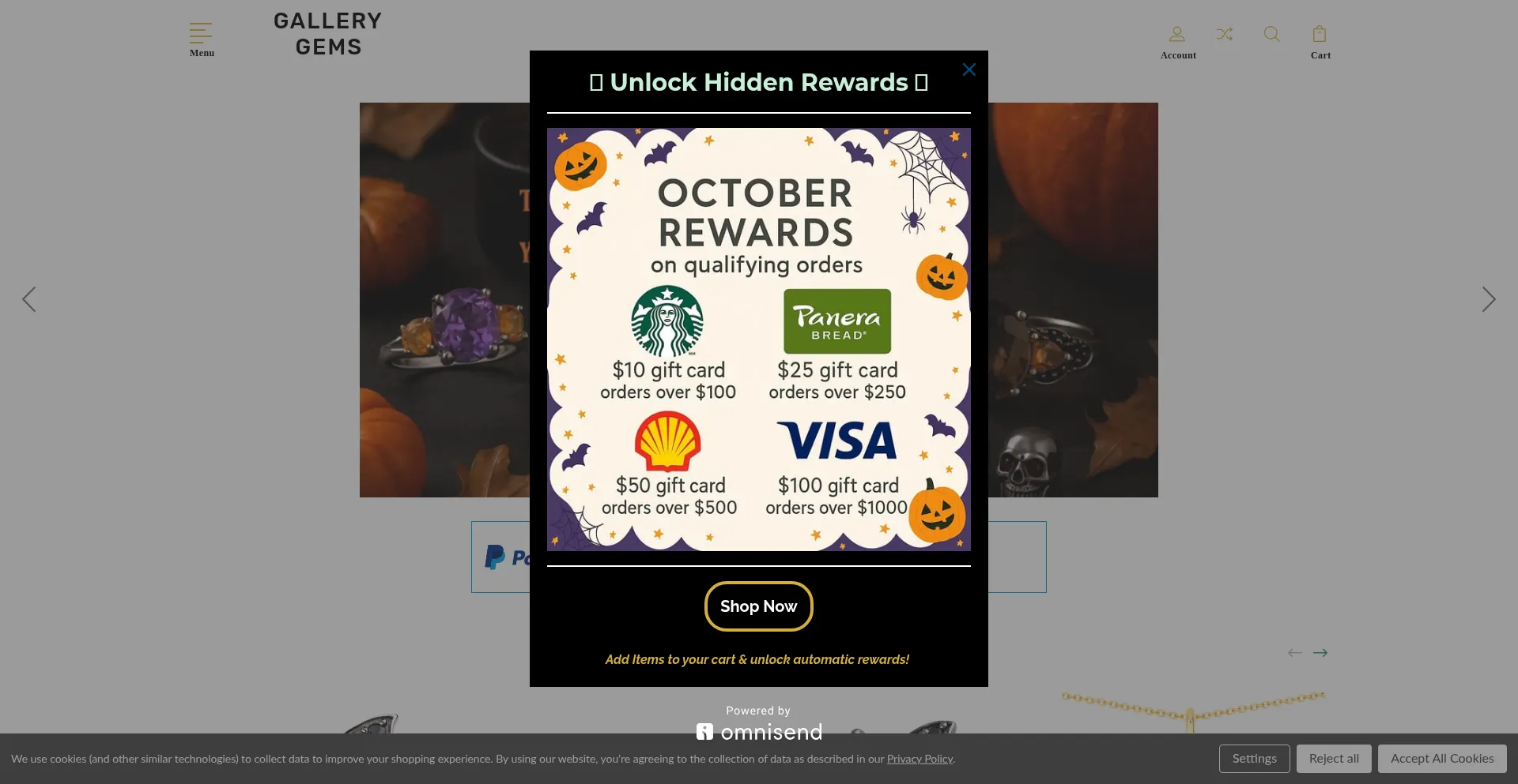 The website implements cookie consent mechanisms in compliance with privacy regulations such as GDPR or CCPA. This demonstrates that gallerygemsshop.com adheres to data protection standards and provides users with control over personal data collection practices.