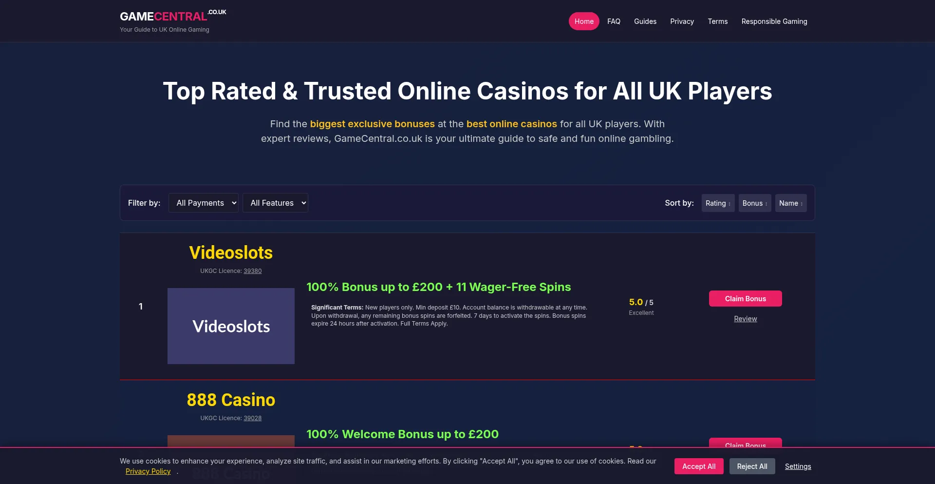 GameCentral.co.uk - Compare Top UK Online Gaming Sites & Bonuses (2025)