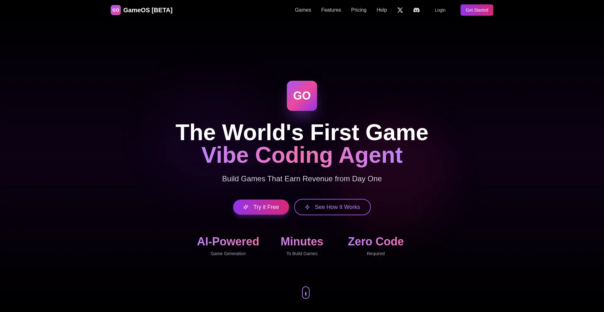 GameOS.dev - The World's First Game Vibe Coding Agent. Build games from a single prompt with AI-powered generation.