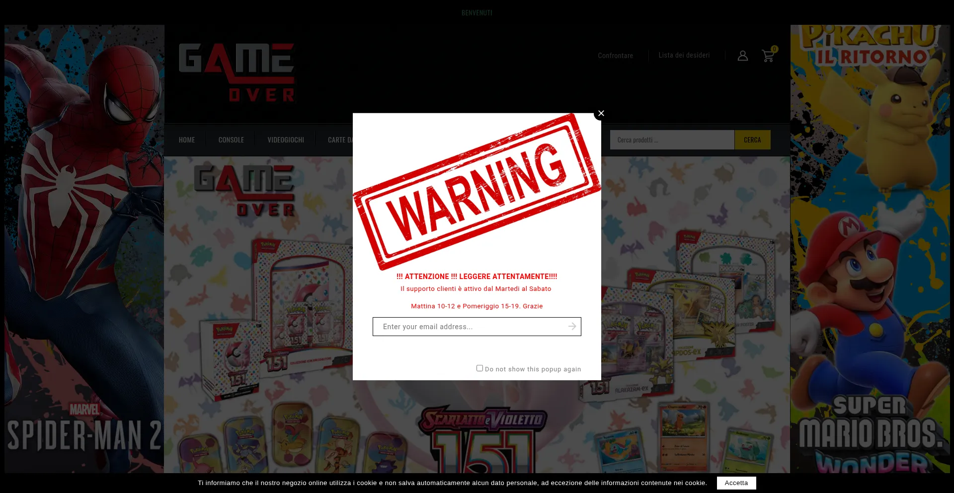 Analysis indicates that gameovertreviglio.com operates as an e-commerce platform facilitating online transactions for goods or services. The website implements shopping cart functionality, payment processing systems, and product catalog features typical of commercial retail operations.