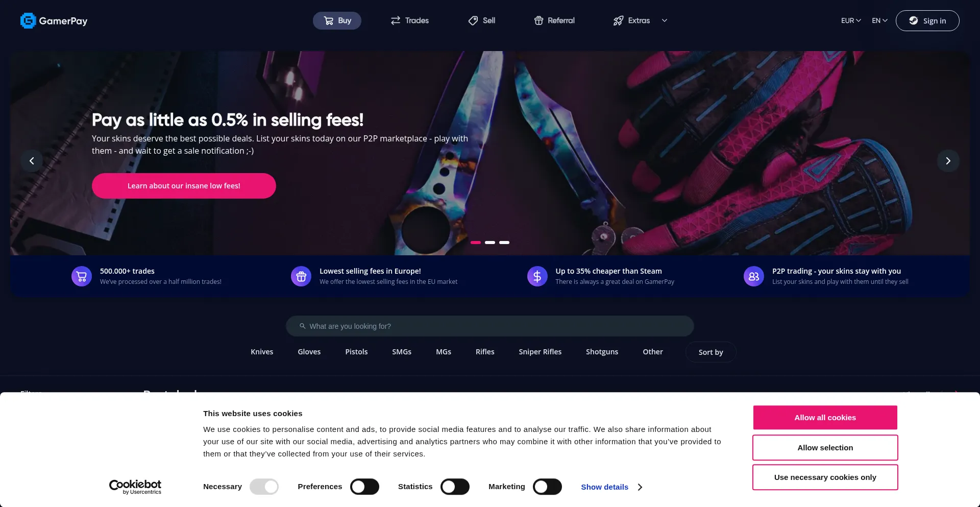 Buy and sell CS2 skins safely on GamerPay. Low fees, secure trades, instant delivery, and verified sellers. Join 400,000+ gamers trading Counter-Strike 2 skins.