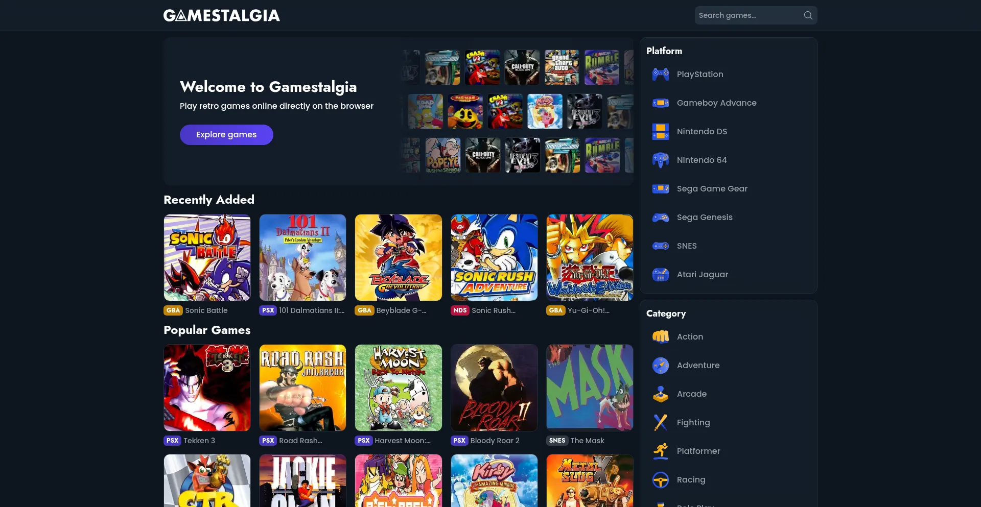 Gamestalgia allows you to play retro games directly on your browser. No downloads or installations required, just click and play!