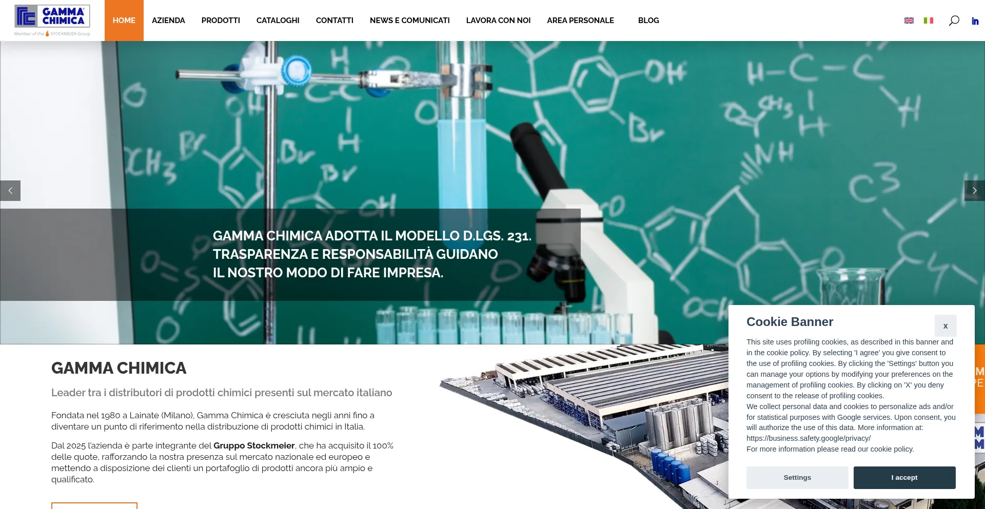 The website implements cookie consent mechanisms in compliance with privacy regulations such as GDPR or CCPA. This demonstrates that gammachimica.it adheres to data protection standards and provides users with control over personal data collection practices.