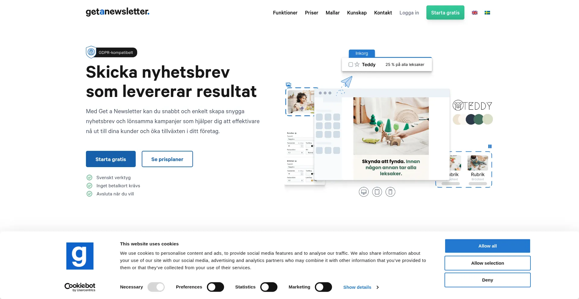 Med Get a Newsletter kan du börja skapa och skicka snygga nyhetsbrev helt gratis för att nå ut till dina kunder och öka tillväxten i ditt företag.