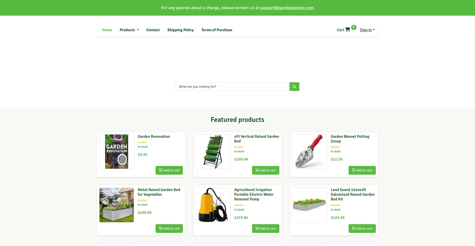 The gardenedenic.com website utilizes free e-commerce platform solutions, which may indicate cost-conscious operations but could also suggest limitations in security features, customer support, or advanced functionality compared to enterprise-grade solutions.