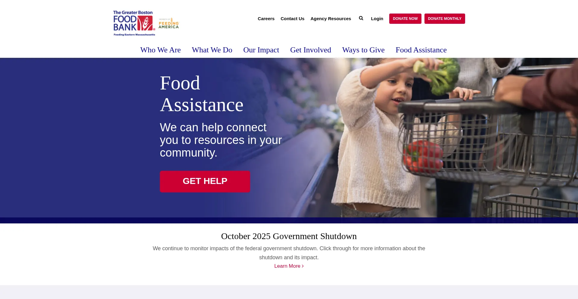The Greater Boston Food Bank works to end hunger here by providing our neighbors in need across 190 cities and towns with the food and resources they need.