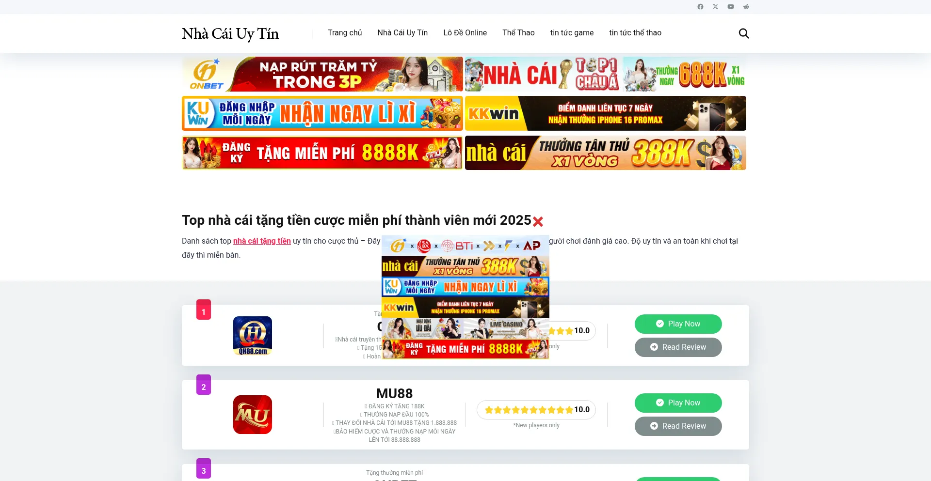 Chia sẻ danh sách top 8 nhà cái uy tín, nhà cái tặng tiền trải nghiệm cược miễn phí không cần nạp dành cho tân thủ 2025.