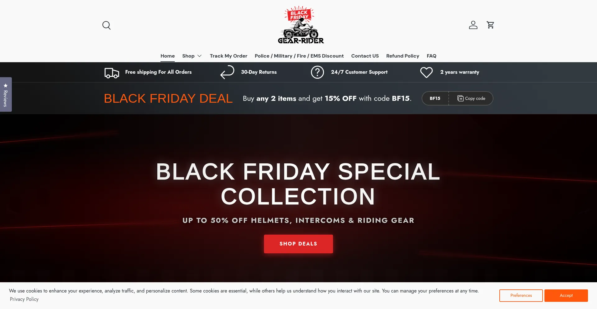 Analysis indicates that gear-rider.com operates as an e-commerce platform facilitating online transactions for goods or services. The website implements shopping cart functionality, payment processing systems, and product catalog features typical of commercial retail operations.